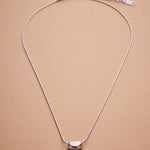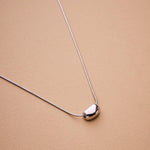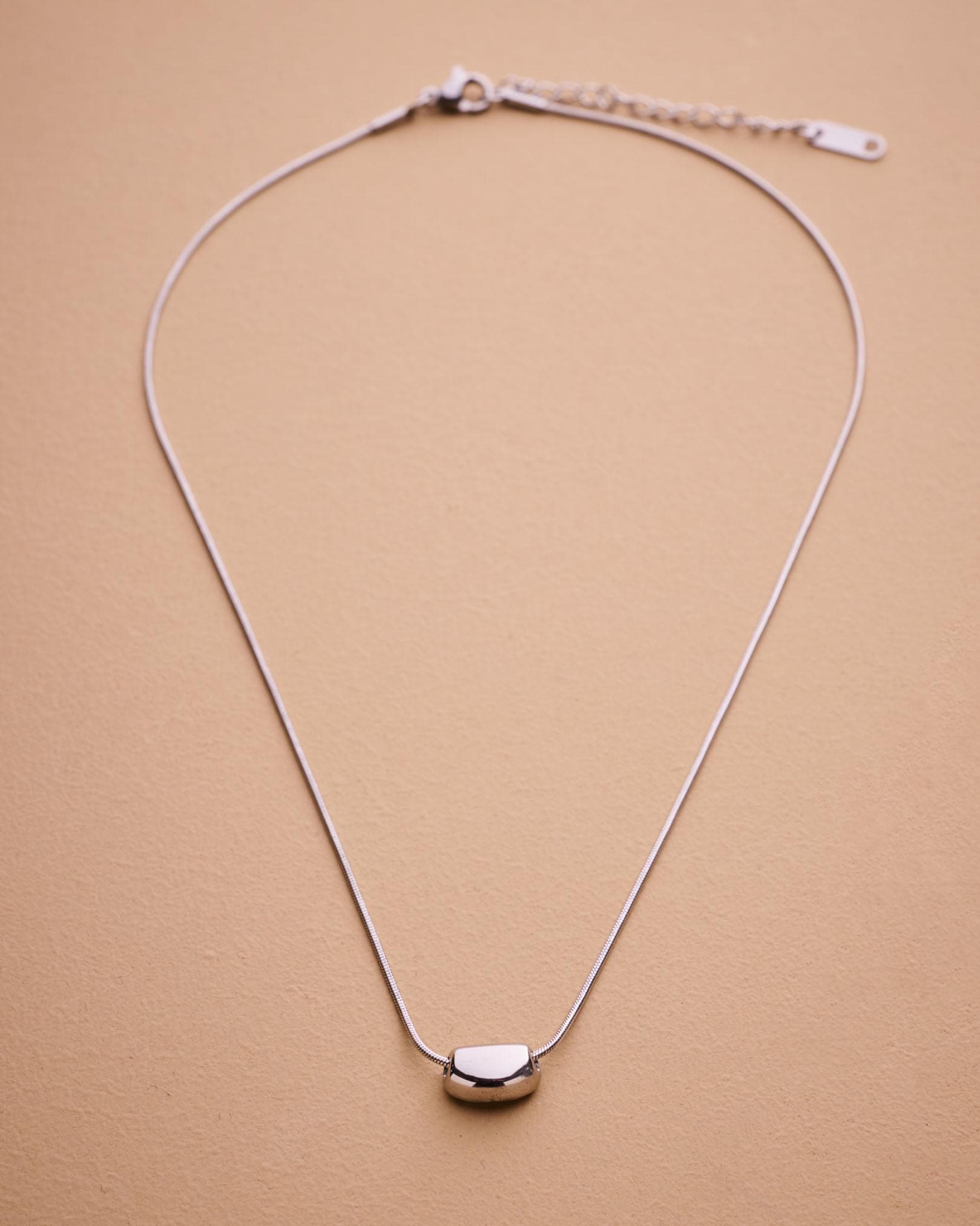 A minimal yet distinctive silver necklace that balances modern simplicity with sculptural charm. The smooth bean-shaped bead pendant adds a touch of understated elegance, making it a perfect piece for everyday wear or layering.Crafted from polished stainless steel, this necklace reflects light beautifully while staying durable, waterproof, and hypoallergenic. Its contemporary snake chain and bean pendant design bring a subtle artistic vibe to any look — a versatile piece you’ll reach for again and again.MEASUREMENTS AND SIZE