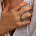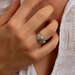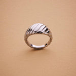 Silver Croissant Ring, Ribbed Dome Ring for Women, Modern Sculptural Statement Ring, Bold Silver Waterproof Braided Soft Dome Ring