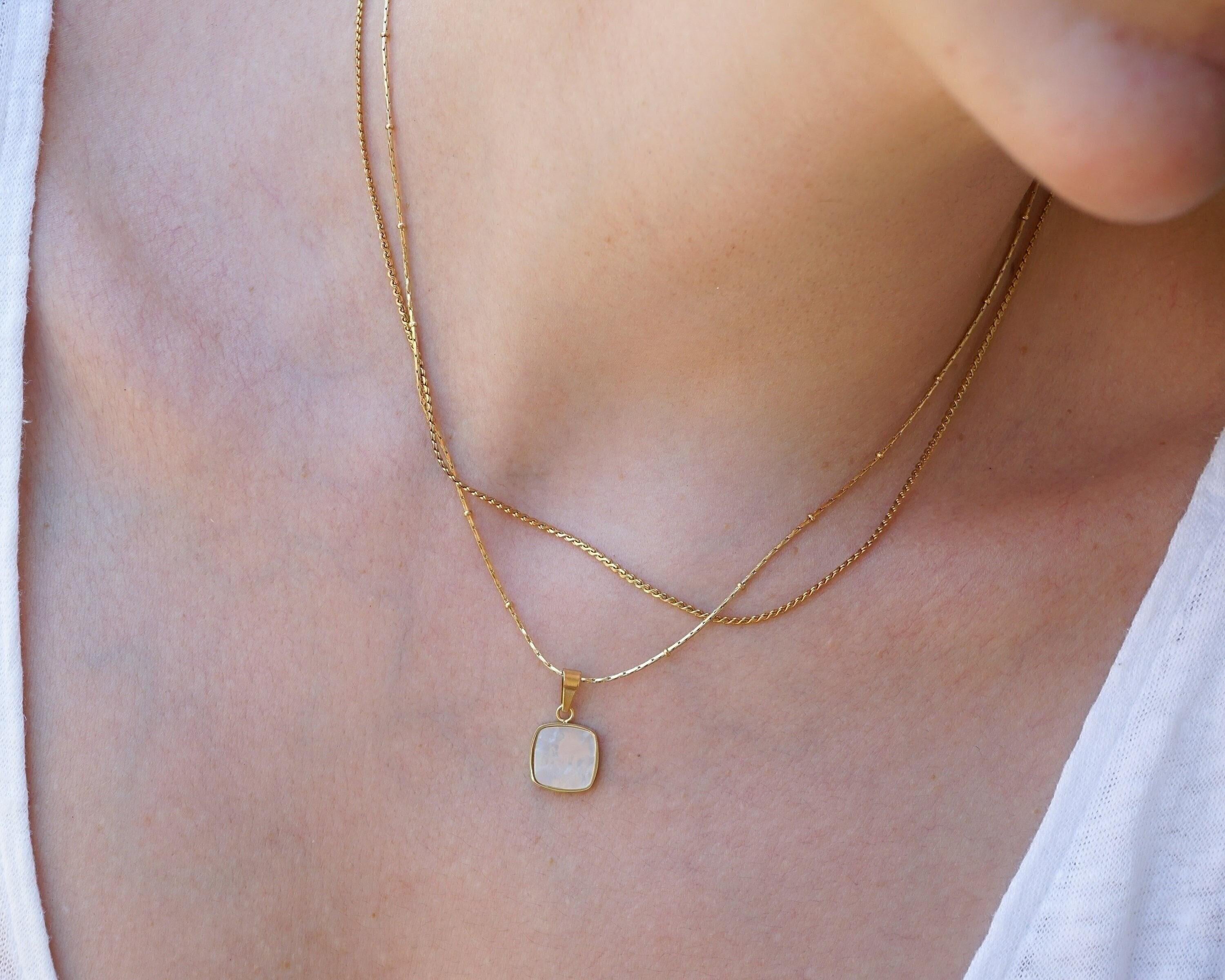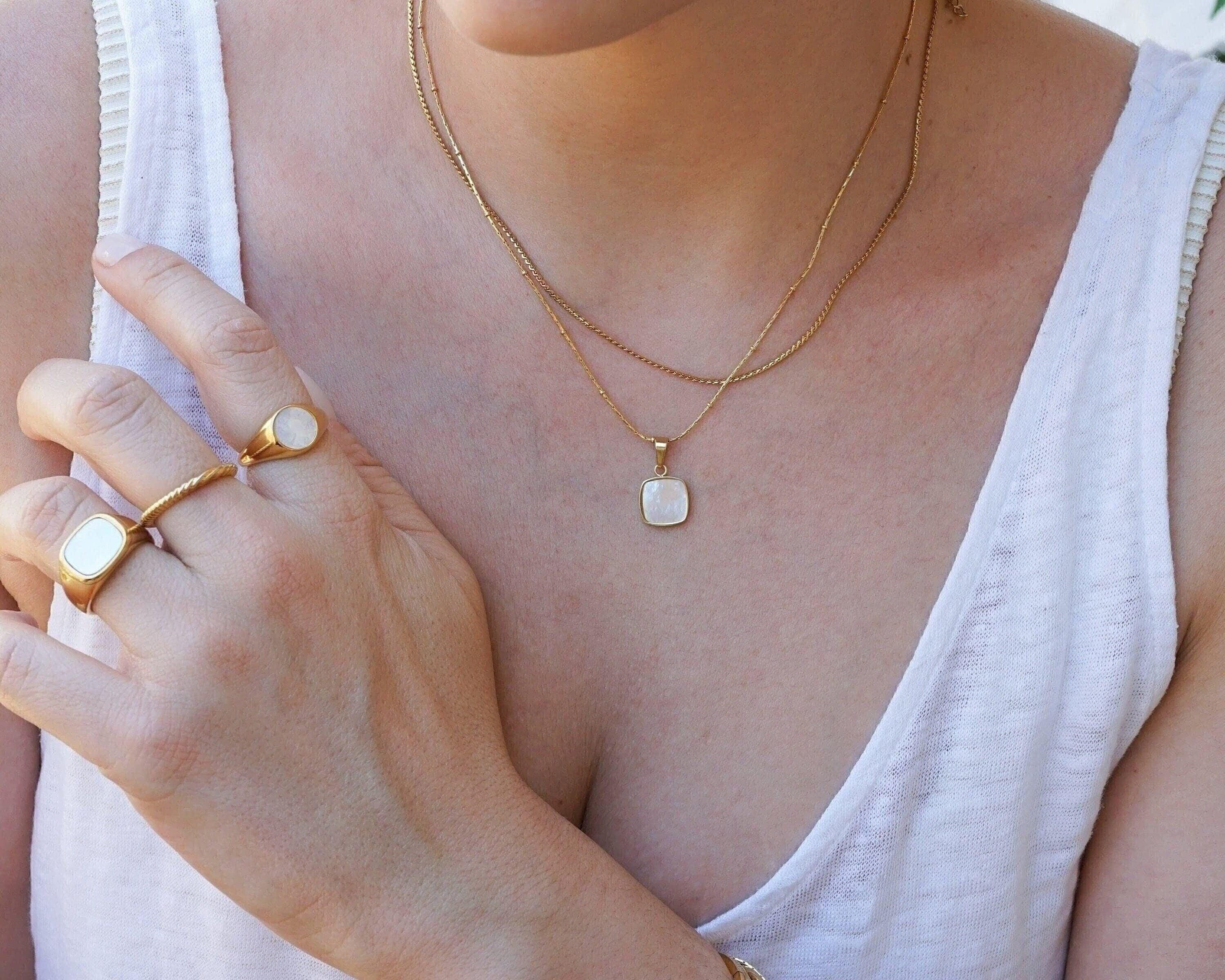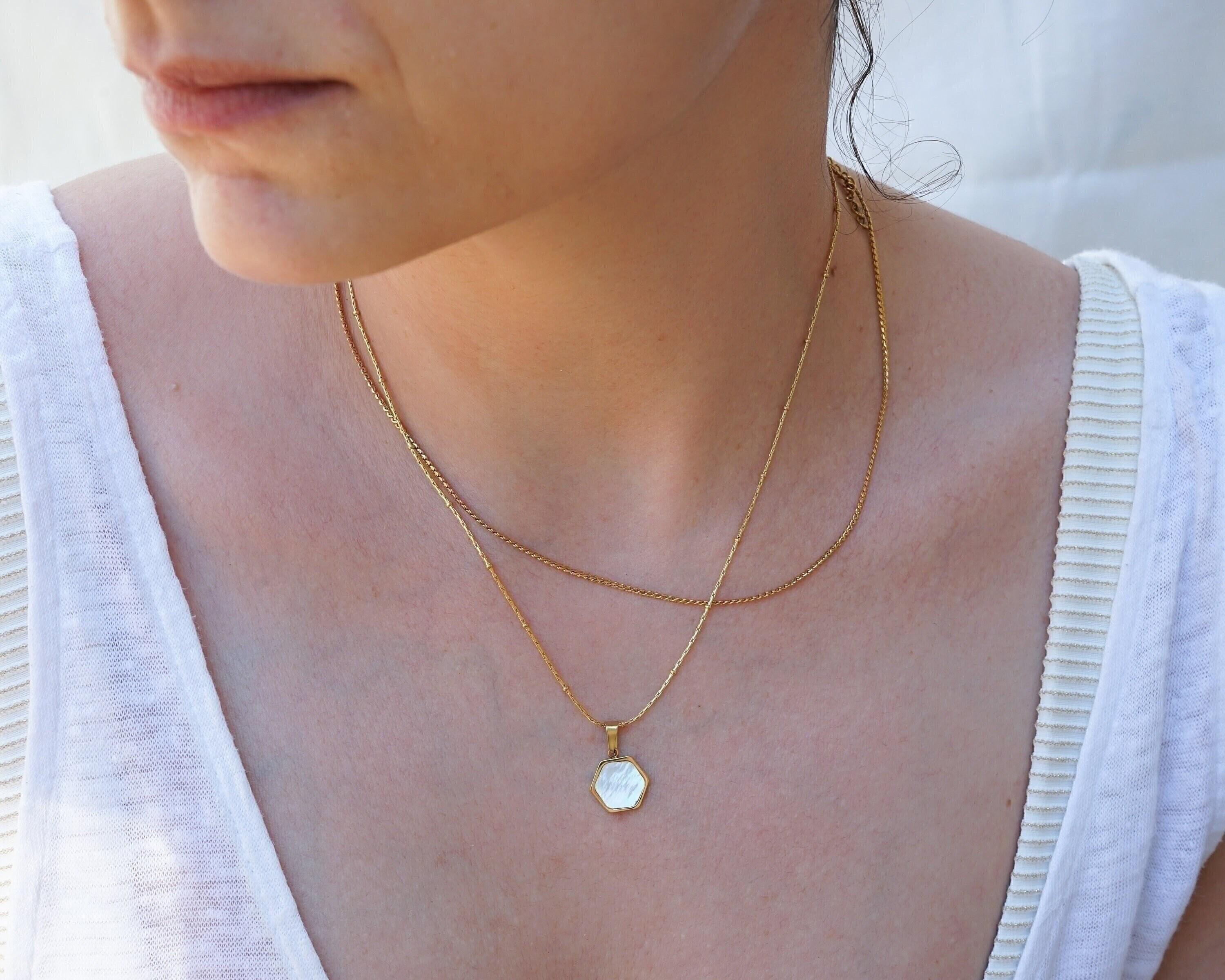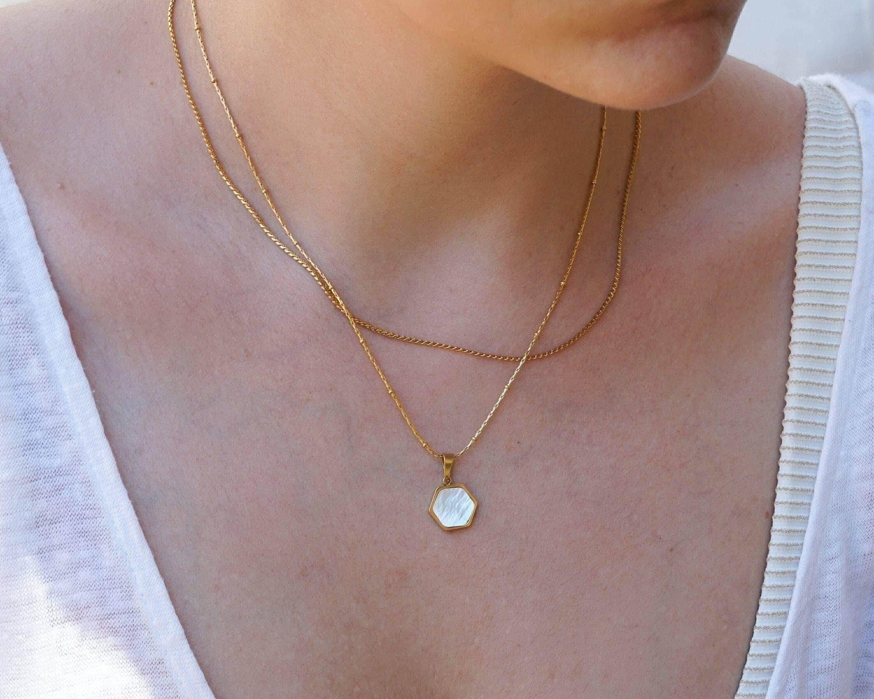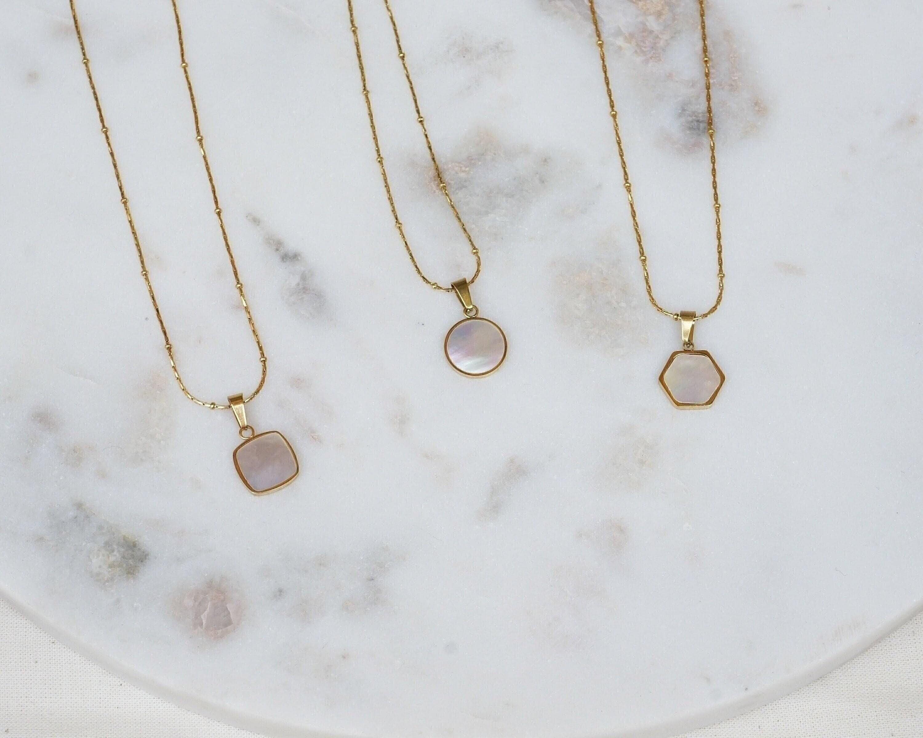 Embrace the essence of summer with our exquisite White Shell Geometric Necklace, a piece that effortlessly carries the beach vibe wherever you go, regardless of the weather. This unique necklace features a striking geometric pendant crafted from beautiful white shell, elegantly paired with a durable gold stainless steel bamboo chain that maintains its stunning appearance over time.